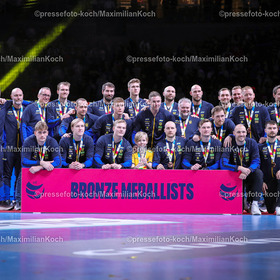 2024.01.28, Handball EM Männer, Finale, Siegerehrung Frankreich (1), Dänemark (2), Schweden (3)